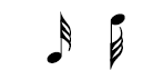 در شکل زیر نسبت بین نتهای سفید، سیاه و چنگ نشان داده شده است :