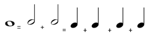 دو سیاه که هر کدام برابر با یک ضرب است در شکل زیر می توانید نسبت های بین گرد ، سفید و سیاه را ببینید: